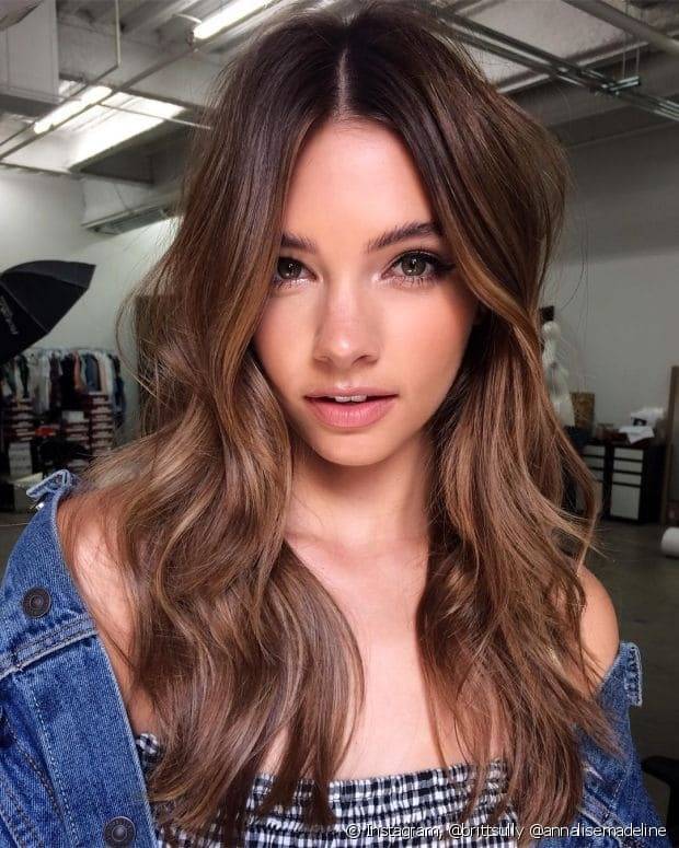 Мягкие переливчатые блики отлично смотрятся при темных локонах. А сложный тип окрашивания (шатуш или брондирование) делает русый цвет замечательным.