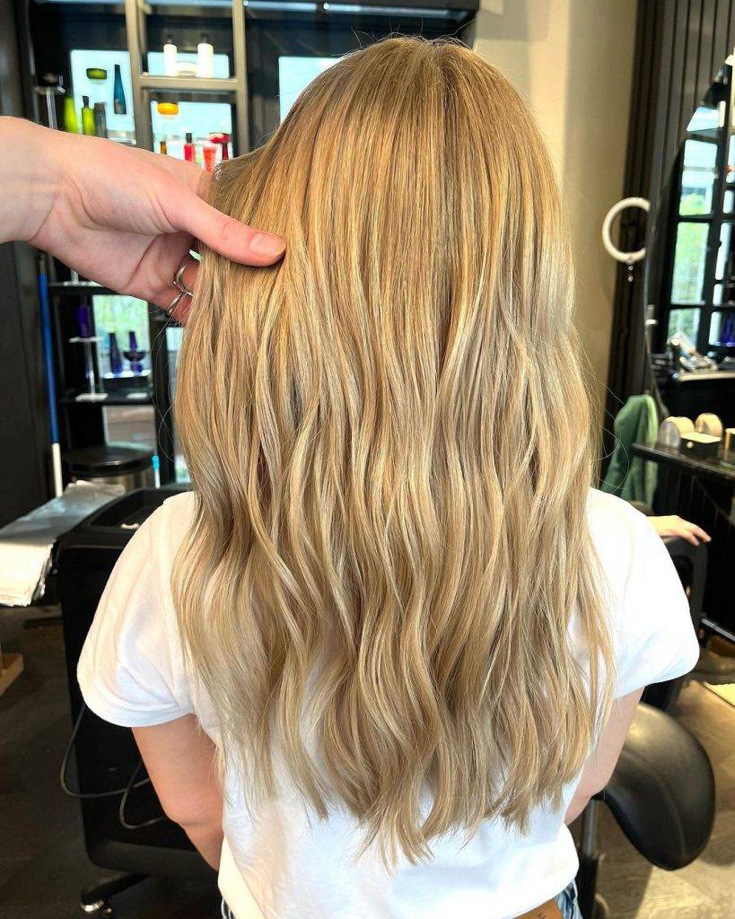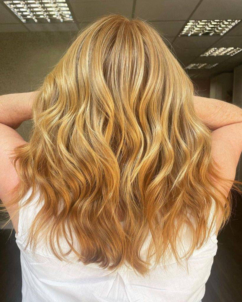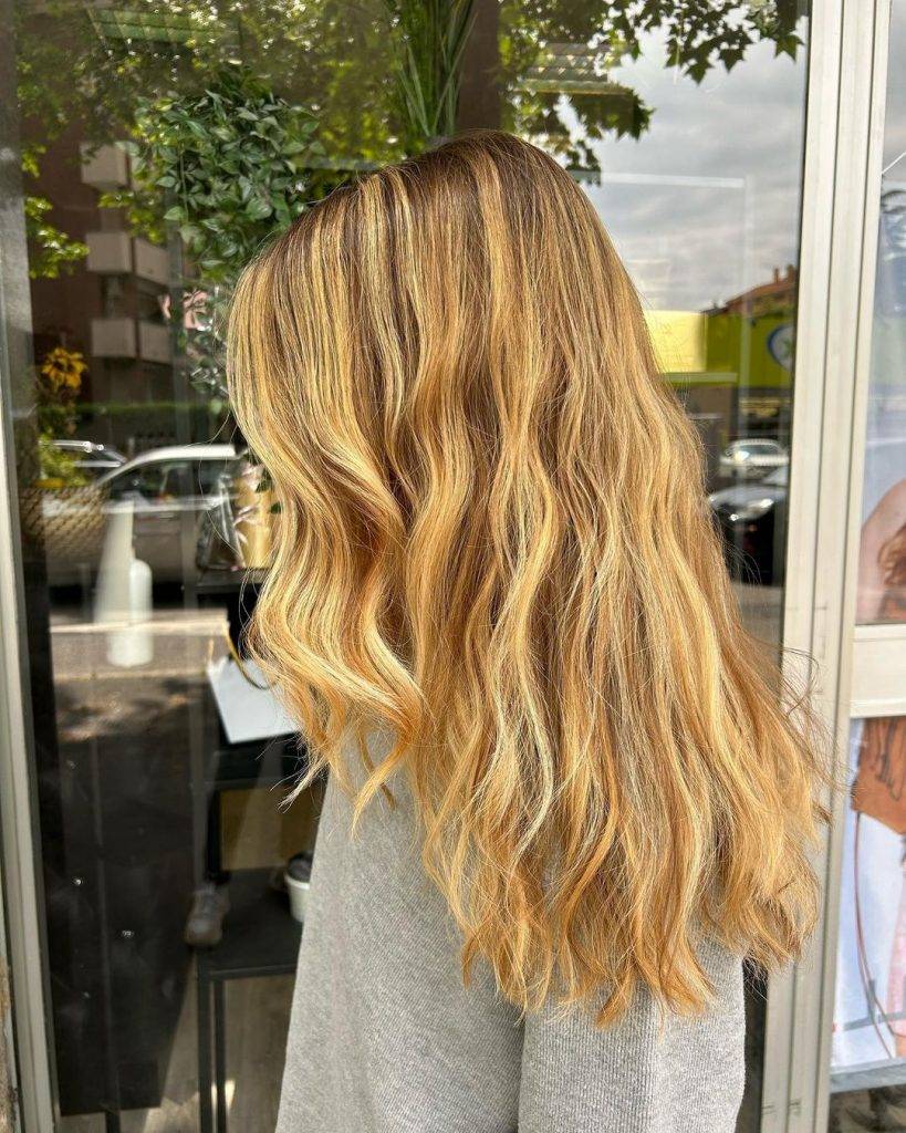 Золотисто-пшеничный цвет волос – это воплощение солнечного блеска и естественной красоты. Он сочетает в себе золотистые оттенки и мягкую пшеничную палитру, создавая образ, который наполнен теплом и светом.