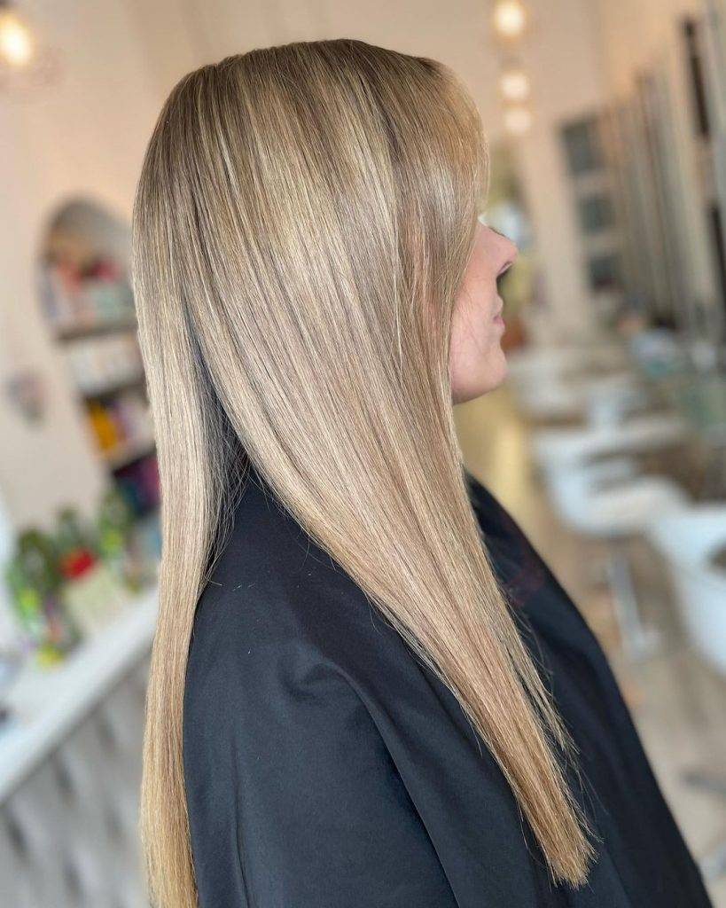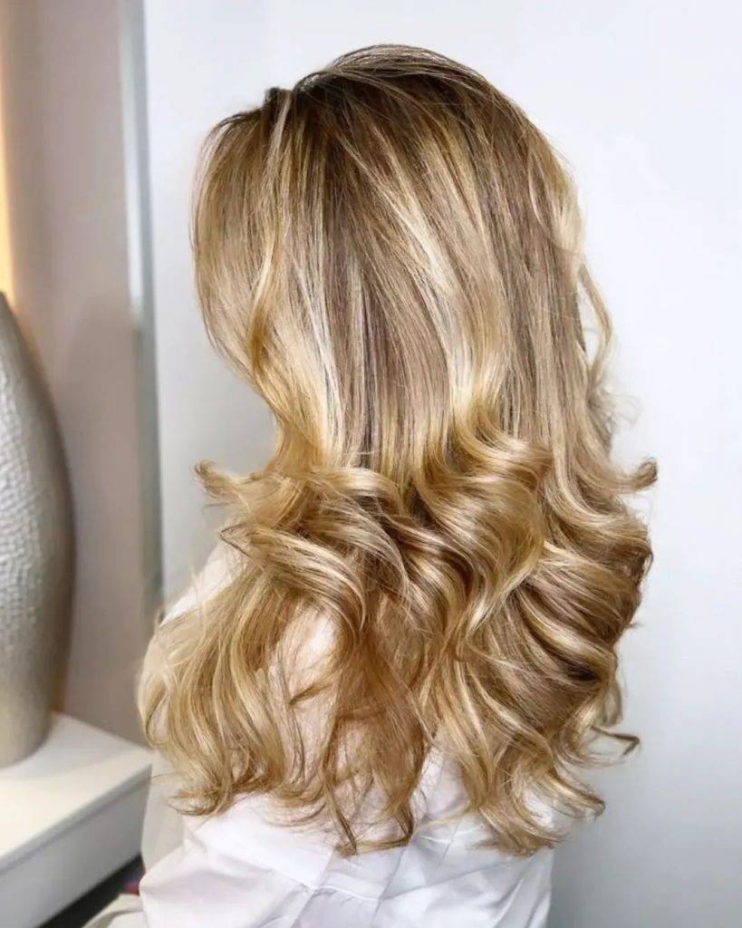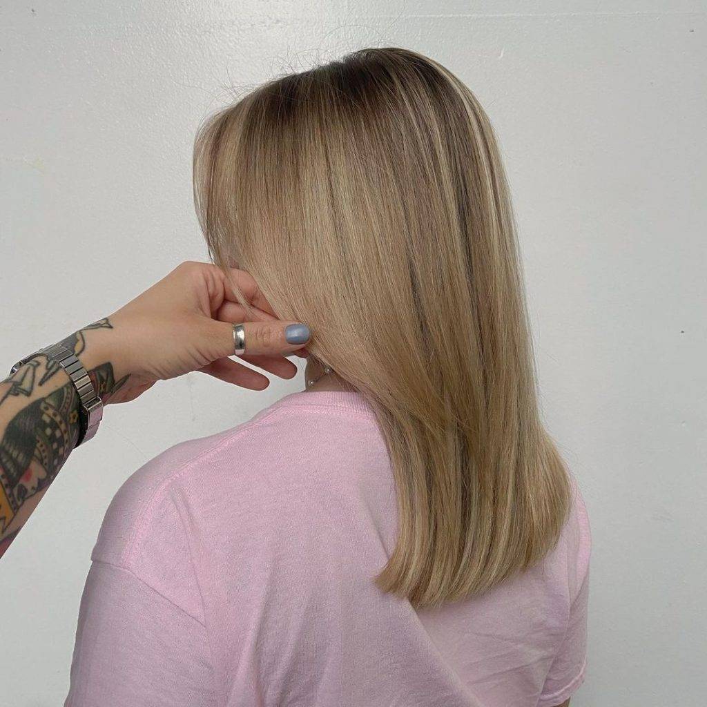 Такой тон имеет нотки коричневого, песочного. Окрашивание выполняется при блонде, благодаря чему эффект выходит благородный. Если нужно больше объема, то корни делают темными.