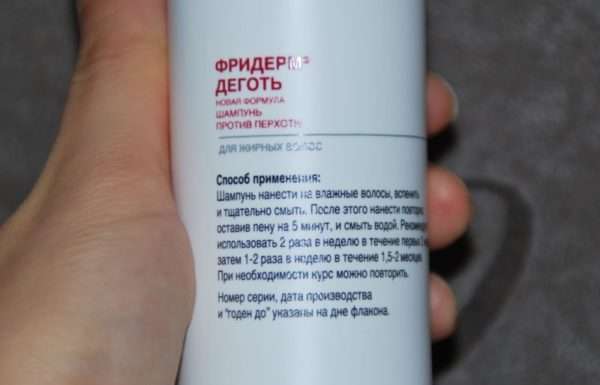 - Фридерм Деготь – дерматологический шампунь. Небольшое количество препарата наносится на влажные волосы. Данную процедуру проделывать на протяжении 8 12 недель.