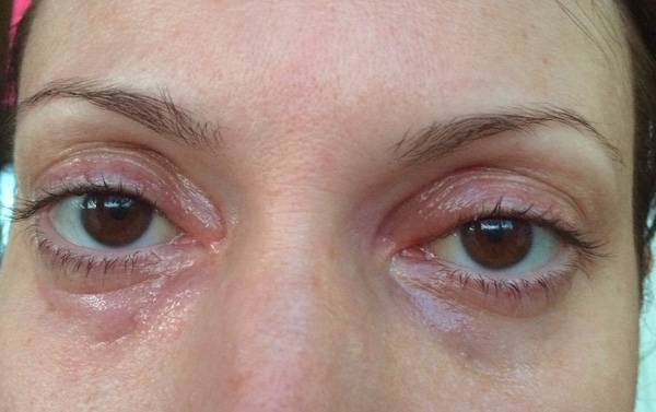 - Сильный отек тканей век, лба. Введенный ботулотоксин парализует мышечные волокна, снижает отток лимфы, венозной крови, ткани накапливают лишнюю жидкость, она тянет веки вниз.
