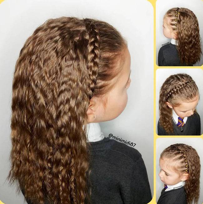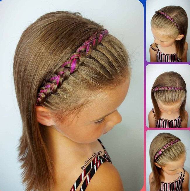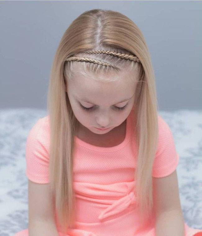 Эта прическа позволяет вам экспериментировать с волосами вашего ребенка. Нужно заплести волос ребенка таким образом, чтобы коса проходила через голову от уха до уха, создавая форму, похожую на ободок. Это просто, компактно и идеально.
