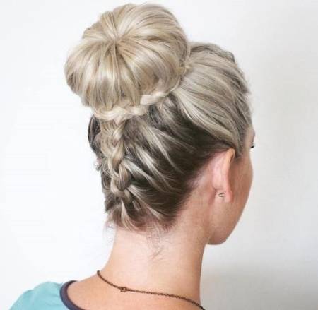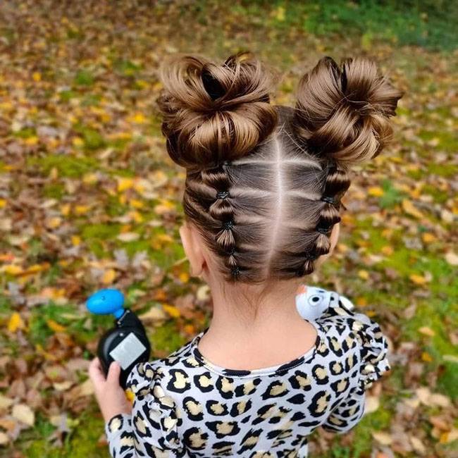 Этот вариант поможет вам компактно собрать волосы в два пучка, возле каждого уха. Сзади он выглядит очень аккуратно и создает идеальную блочную перегородку над головой.