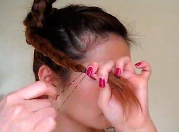 - 5. Пришла очередь и боковых косичек. С ними поступаем аналогично, то есть оборачиваем их вокруг пучка.