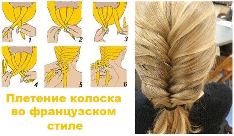 От французской отличается только тем, что в этом случае пряди из свободной части объема не вплетаются внутрь, а накидываются сверху.