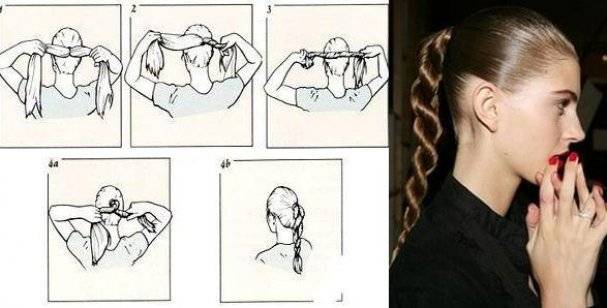 - Можно из всего хвоста сделать косу и обернуть ею бублик, зафиксировав у основания.