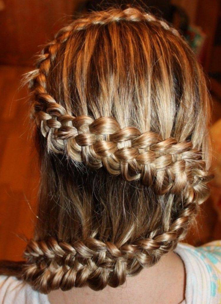 На длинные волосы можно самостоятельно сделать прическу из нескольких каскадов. Это отличная альтернатива распущенным волосам, которые не беспокоят и не спутываются в течение всего дня.