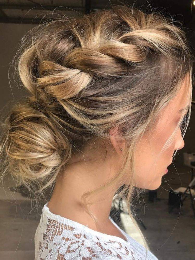 Очень красивая прическа, подходящая для любого особого случая. Это низкая текстура пончика. Для начала плетем по бокам головы две французские косы. Они могут быть обычными или изготовлены методом плетения «Рыбий хвост».