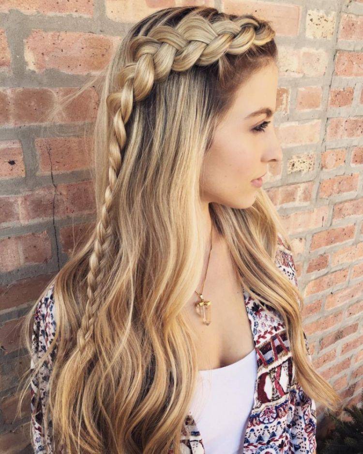 Выпускной вечер в старшей школе запоминается на всю жизнь, поэтому все, включая внешний вид, должно быть безупречным. Прическа помогает подчеркнуть все достоинства обладательницы и привлечь восторженные взгляды окружающих. Его выбор зависит от общего стиля мероприятия, платья и образа, однако плетение всегда смотрится выигрышно.