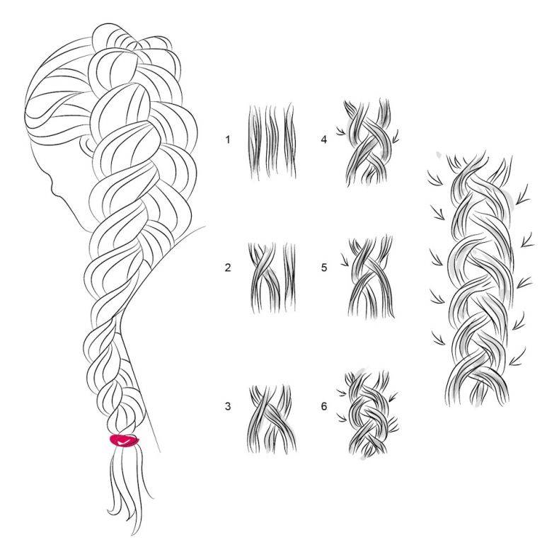 И таким же образом заплетается остаток волос. По ходу плетения прядки нужно разравнивать и поправлять, чтобы они казались максимально равномерными. При корректном соблюдении техники плетения результат будет превосходным — получится поистине крупная и яркая коса из длинных волос.