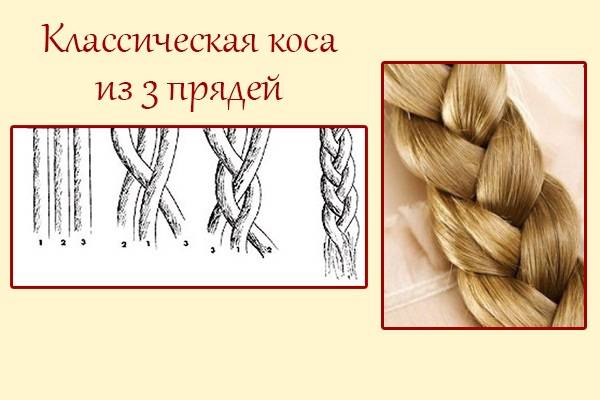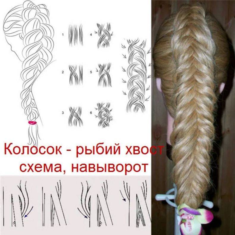 А в остальном все аналогично, схема совпадает. Ближе ко лбу волосы разделяют на 3 части, плетут, добавляя небольшие пряди из свободного объема, затем плетение завершается как обычная русская коса и фиксируется лентой, заколкой, резинкой или завязывается на узелок.