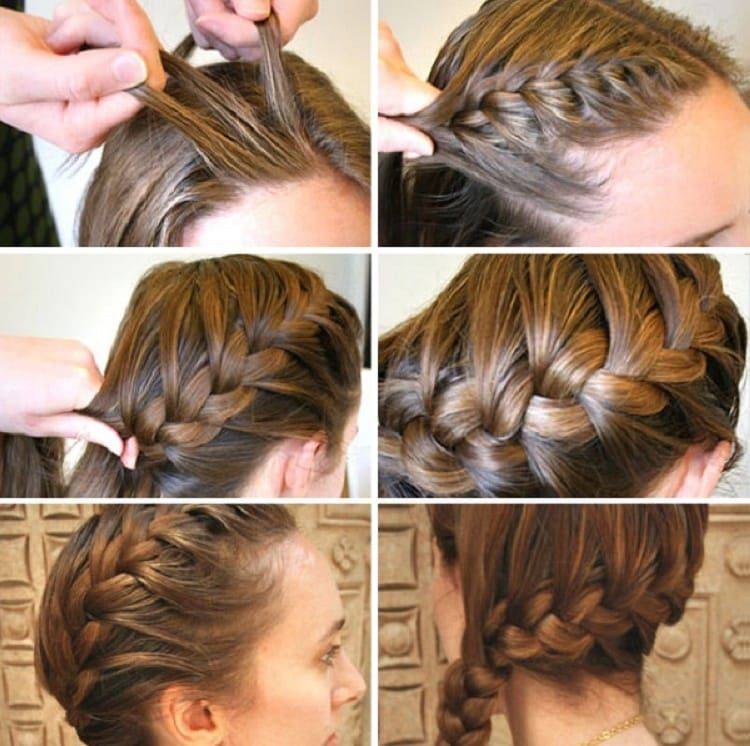 Плетение косички по окружности головы. Практичная и удобная прическа, остается аккуратной достаточно долго.