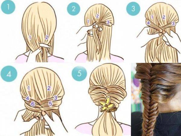 Просто и быстро сделать гульку с косичкой из хвоста. Прическу выполняют, используя следующую пошаговую инструкцию: