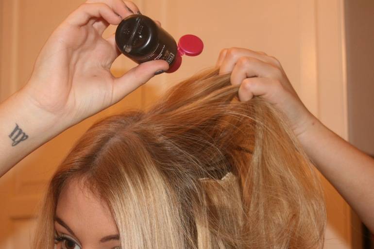 Пудра наносится на корни волос, аккуратно втирается в кожу головы массирующими движениями. Быстрый результат, но по мере его спадания объёма причёску необходимо взбить пальцами.