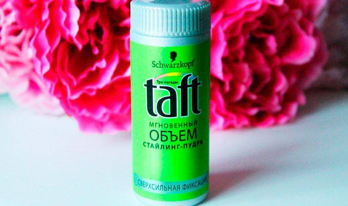 Taft «Мгновенный объем» – классическая стайлинг-пудра, особенно подходит жирным волосам, так как придает локонам матовый блеск. Очень проста в обращении и экономно расходуется. Стоимость более доступна: баночка весом в 10 г расходуется за месяц при длинных волосах и стоит 220 р.