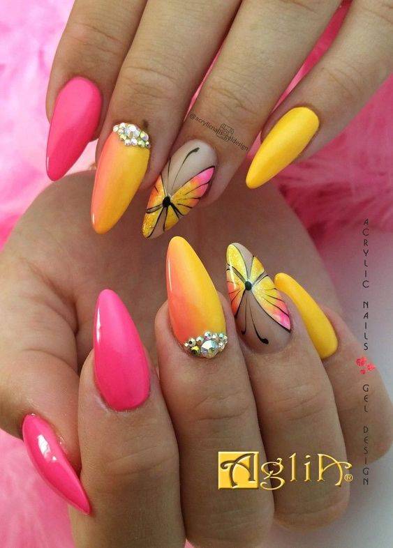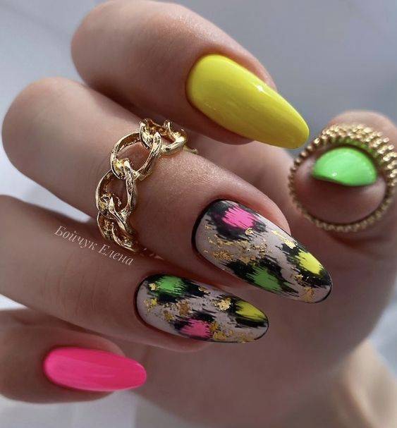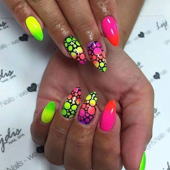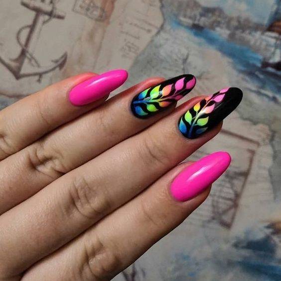 Летом модные тенденции в ногтевом дизайне – это применение сочных оттенков и ярких акцентов. Можно выбрать самые необычные виды маникюра – радугу на ногтях, цветную абстракцию, брызги, градиент, неоновые тона.
