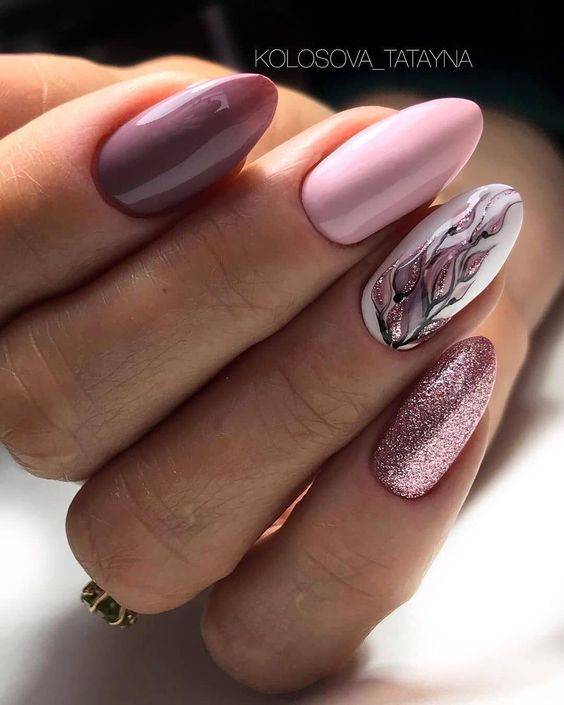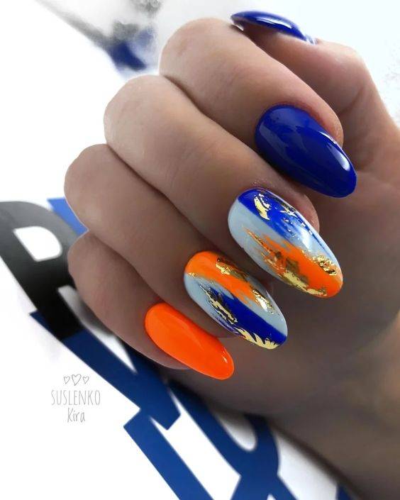 Новинка 2022 года — мазки кистью. Это один из самых простых способов создания креативного рисунка на ноготках. Здесь есть один нюанс: цвета гель-лака должны быть подобраны правильно, сочетаться между собой и создавать неповторимую иллюстрацию.