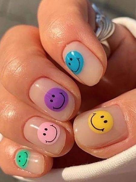 Нейл-арт с радужными смайликами