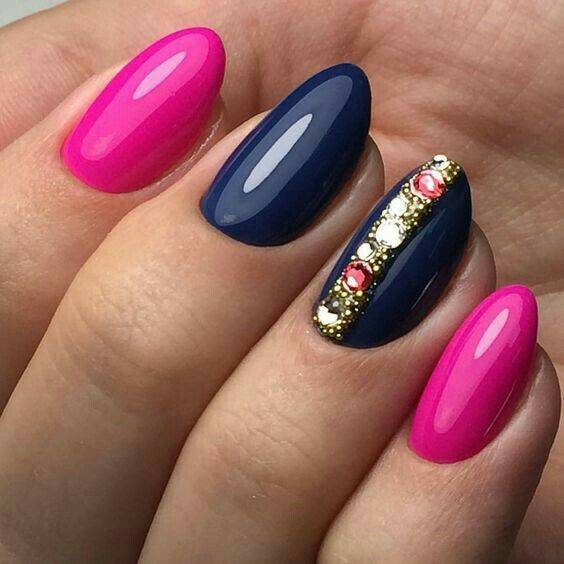- На короткие ногти можно использовать только два цвета, иначе рискуете укоротить свои ноготки еще больше. На длинных ногтях приемлемо сочетание от 3 до 5 цветов, в зависимости от того насколько позволяет площадь.