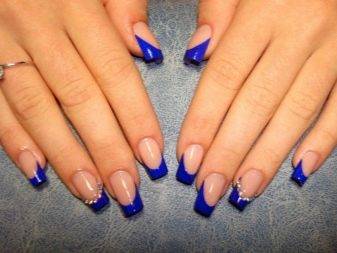 - Запрещается использовать средства для ногтей, основой которых является ацетон. Такие вещества губительны для нарощенного маникюра, так как разъедают его структуру. После того как проведена работа над ногтями, их цветовая гамма долго не меняется, поэтому женщина будет ходить с одним и тем же маникюром до коррекции. Вот почему при выборе дизайна ногтей стоит отдать предпочтение универсальности.