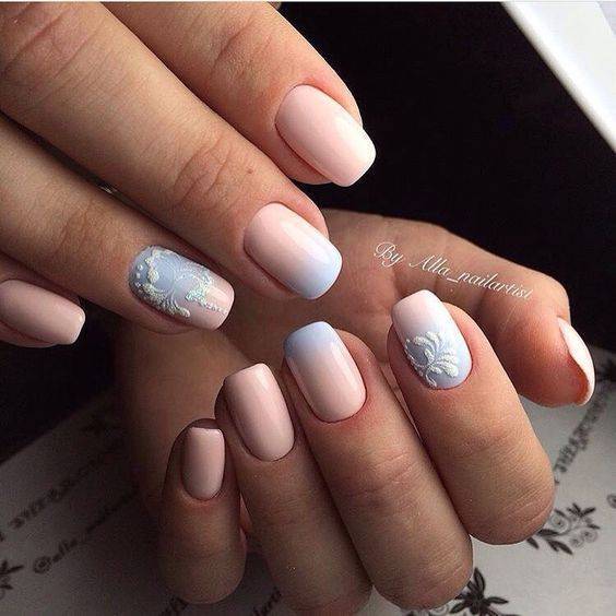 Что касается дизайна ноготков, то наиболее распространенным вариантом двухцветного маникюра является покрытие в пастельной цветовой гамме. Такие оттенки всегда хорошо между собой сочетаются, поэтому такая идея точно понравится новичкам.