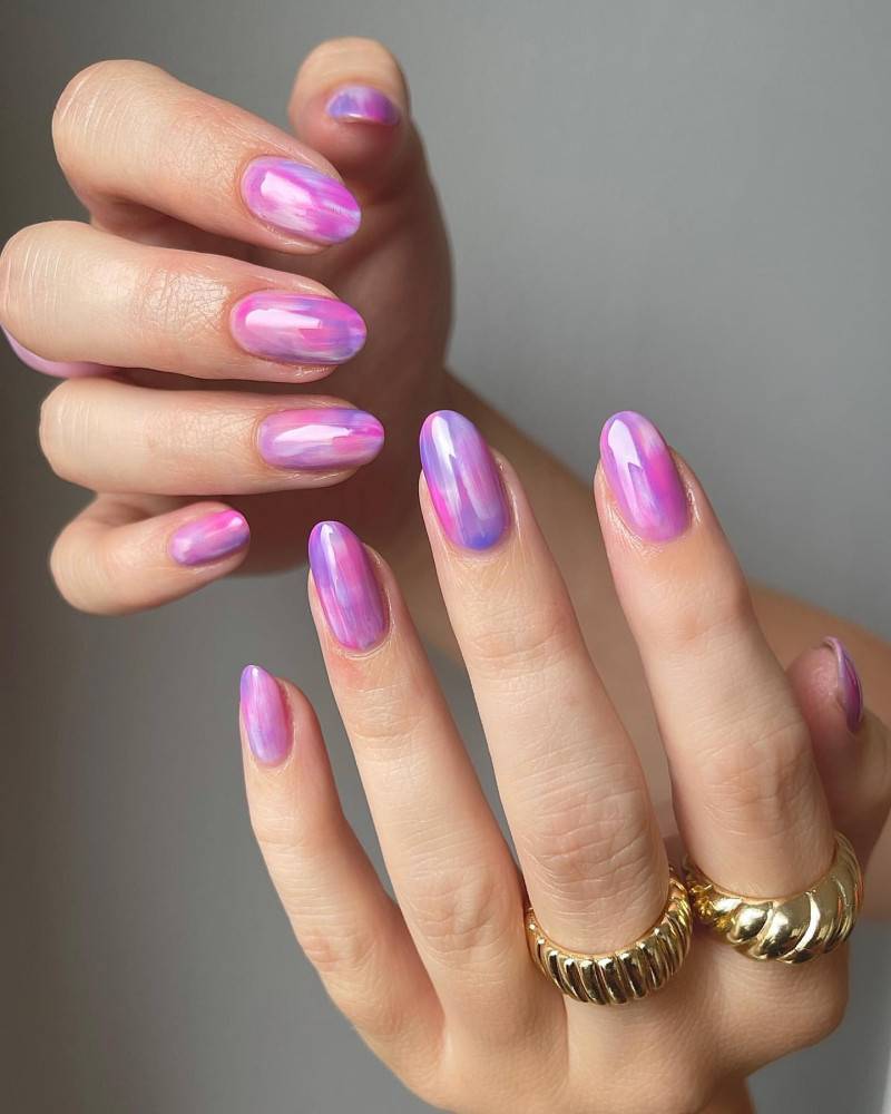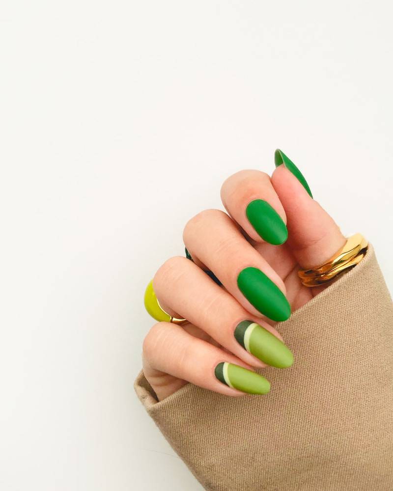 В 2023 самым популярным цветом является зеленый. Особенно приветствуется в маникюре оливковый, матовые оттенки зелени. Также в 2023 на пике популярности фиолетовый цвет, его разновидности – сиреневый, лиловый. Оба оттенка хороши тем, что отлично комбинируются с нежным розовым, черным, желтым и оранжевым.
