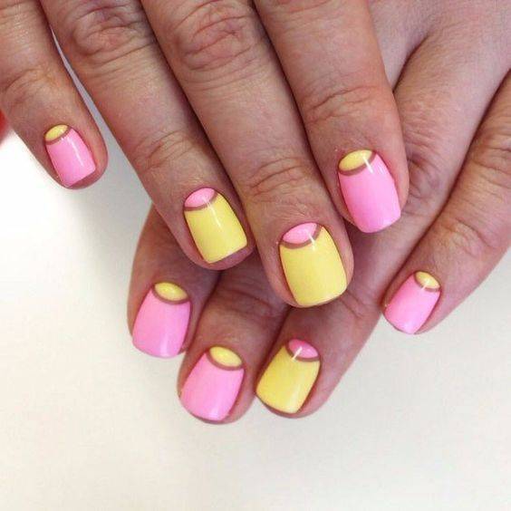 Как видите, двухцветный маникюр – это не только однотонное покрытие. В 2018 году будет актуальным довольно большое разнообразие вариантов дизайна. Поэтому смело экспериментируйте, сочетайте оттенки и результат вас точно порадует.