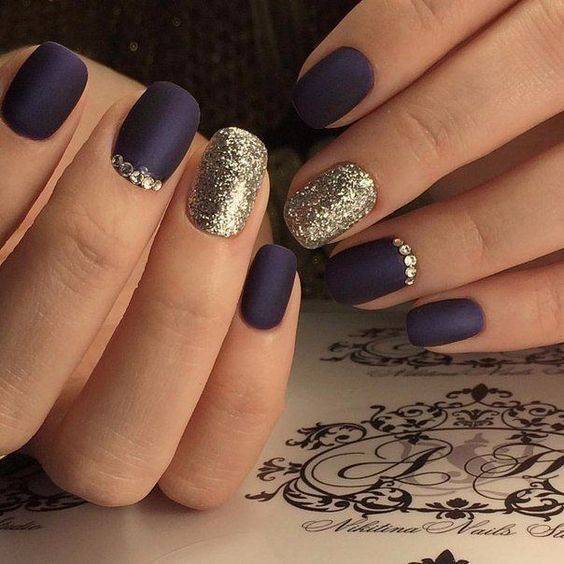 Немного разнообразить и дополнить такой вариант можно с помощью интересного рисунка, страз или блесток. Также можно использовать разные текстуры. То есть несколько ноготков покрыть глянцевым лаком, а остальные матовым. В любом случае смотрится это намного более стильно.