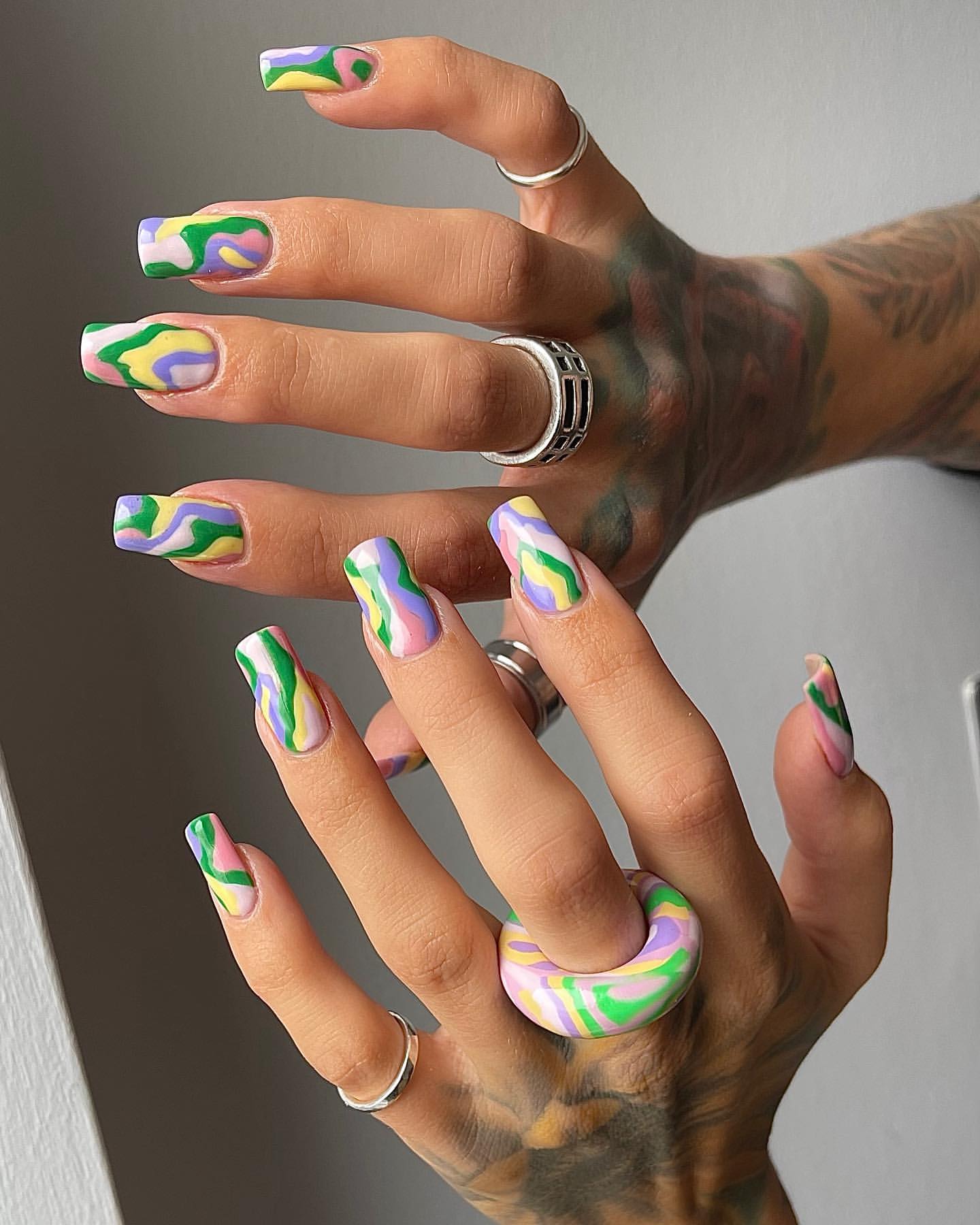 Как правильно вписать разноцветный маникюр в образ и не допустить стилистических ошибок, расскажет наша подборка фотографий с самыми удачными видами дизайнерских решений.
