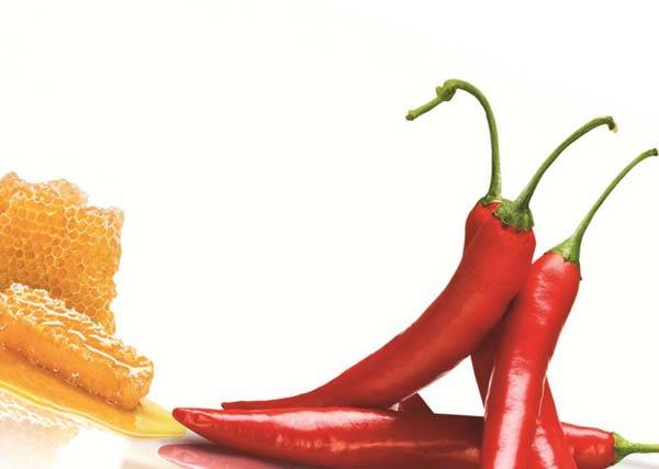 - Столовую ложку чили смешайте с 4-я ложками меда. Добавьте немного витаминов.