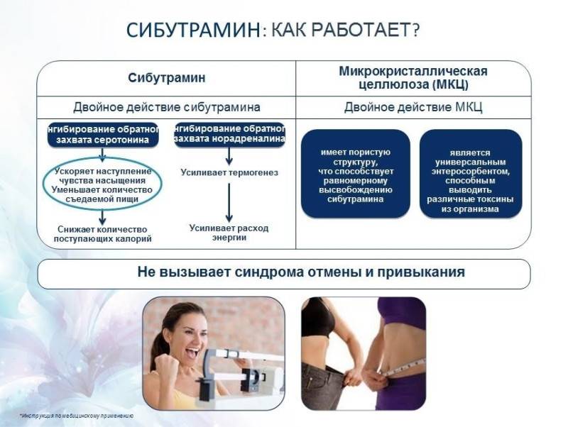 В состав этого уникального препарата, который активирует процесс эффективного похудения, входит только два активных составляющих, целлюлоза с микрокристаллическим строением и сибутрамин.