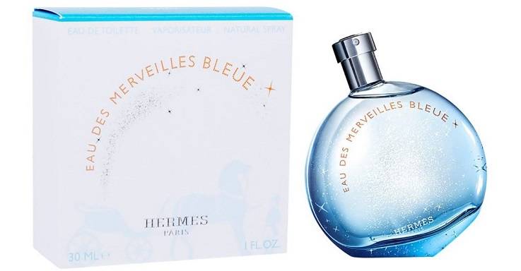 Eau des Merveilles Bleue от Hermes (композиция состоит из морских и древесных нот, с добавлением пачули; аромат подойдет для летнего и весеннего сезона).