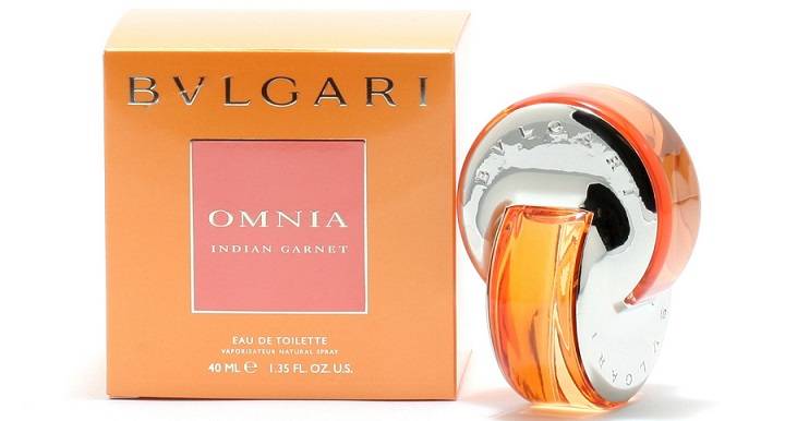 Bvlgari Omnia Indian Garnet от Bvlgari (для данного аромата характерны апельсиновые, мандариновые, османтусовые нотки в сочетании с шафраном и туберозой).