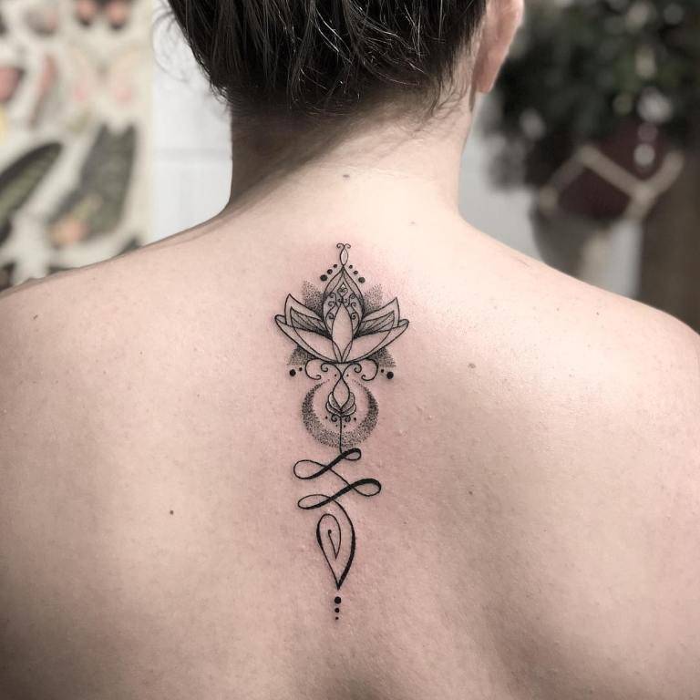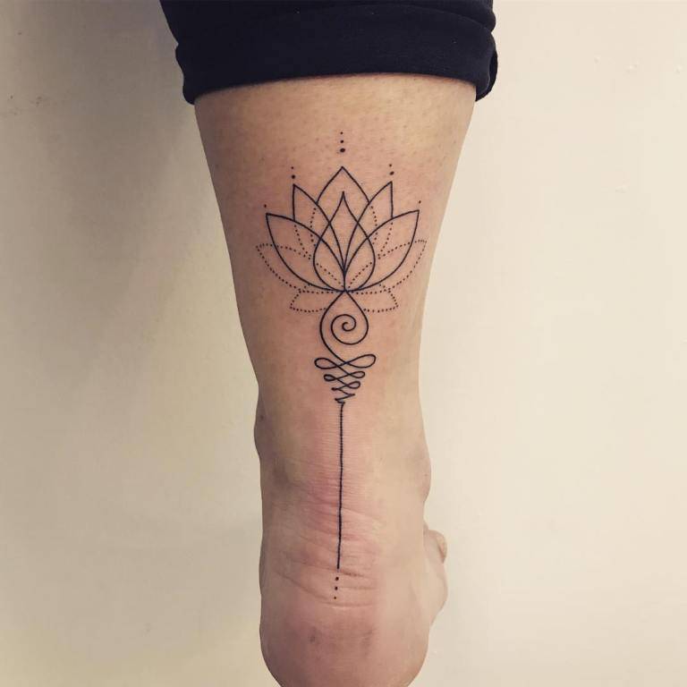 Тату Уналоме – это индуистский символ, представляющий путь к просветлению. Часто этот знак сочетается с цветком лотоса и знаком Ом.