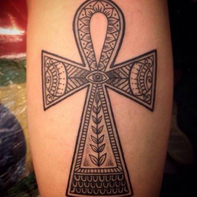 На фото татуировка анкх — египетский крест, символизирующий вечную жизнь