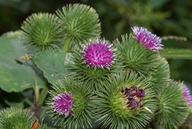Репейник, а, вернее говоря, лопух – двухлетнее растение с характерными крупными листьями и соцветиями с шиловидными заостренными наружными листочками. Большинство растений этого семейства относятся к лечебным, причем в дело идут и листья, и цветы, и семена, и корни. Настой корней в миндальном или оливковом, а иногда даже в подсолнечном и называют репейным маслом.