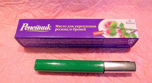 - В период отпусков, как летних, так и зимних, волосы заметно страдают от солнца, ветра, жары или мороза. Это относится не только к локонам, но и к ресницам. Масло на основе репейного экстракта действует на них благотворно, помогает скорой регенерации и защищает поврежденную структуру от внешней среды.