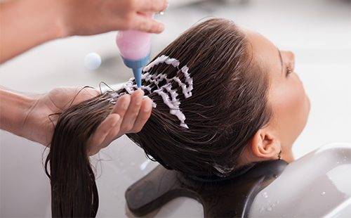 Смывать необходимо сразу после окончания процедуры. Используется проточная вода и нейтральный шампунь. Лучше, если он будет содержать противоперхотные ингредиенты. Смывать нужно аккуратно, но массировать кожу головы обязательно.