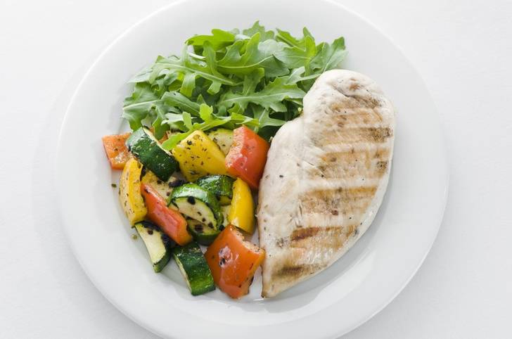 - Обед: Отварное белое куриное мясо с ложкой отварного нешлифованного риса (без соли и масла. Не стоит добавлять также специи). Вместо курицы можно брать нежирную телятину или постную рыбу.