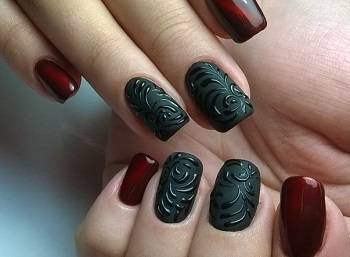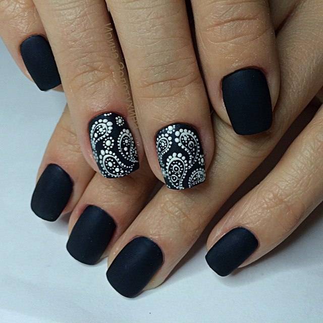 Маникюр с матовым покрытием подойдет каждой девушке и будет сочетаться с любым имиджем. Покрытие можно выполнить в однотонном цвете или попробовать дополнить глянцевыми лаками. Выполнить различные узоры, геометрические формы, украсить блестками и стразами ─ достаточно просто немного пофантазировать. В любом случае тональность покрытия, должна зависеть от мероприятия, для которого оно выполняется.