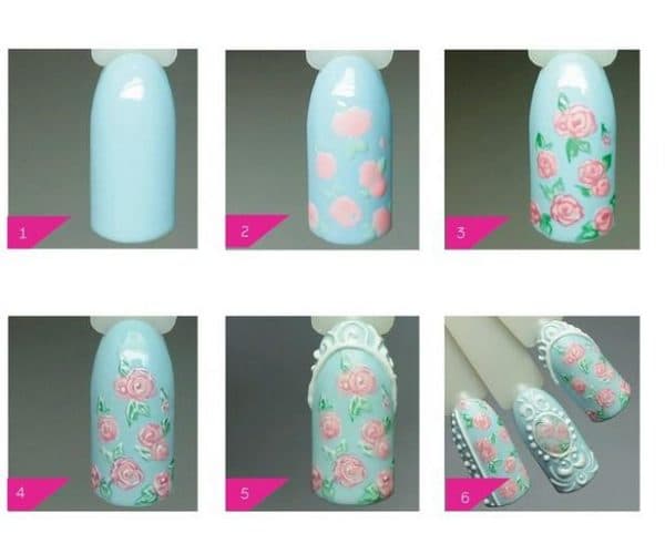 Цветочные рисунки на ногтях гель-краской или гель-лаком