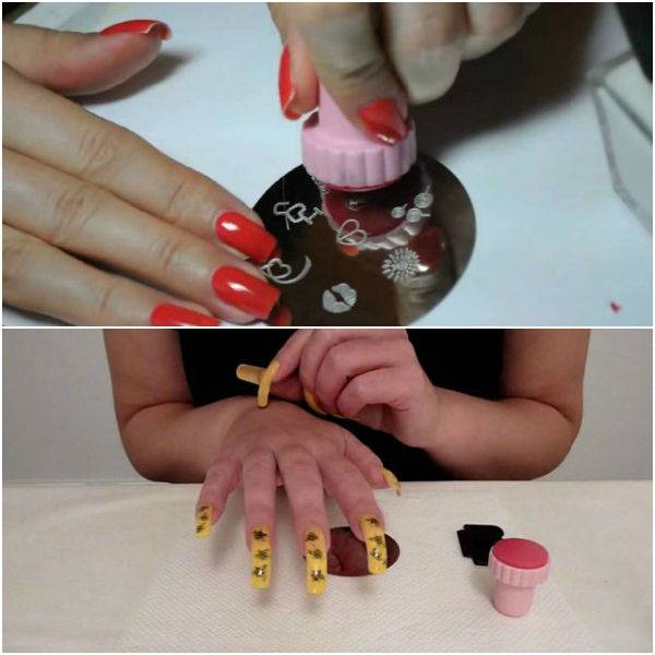 Техника стемпинга напоминает создание и использование штампа или печати. Набор для трафарет-стемпинга стоит некоторых денег, но результат способен сравниться с работой самого скрупулезного ювелира. Красивые узоры на ногтях получаются более четкими и изысканными, нежели при использовании клеевых трафаретов.