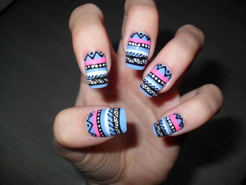 Если вы не уверены в идеальности линий, можете воспользоваться специальными трафаретами. Как только рисунок высохнет, ноготь покрывается слоем закрепителя, который поможет сохранить маникюр дольше.