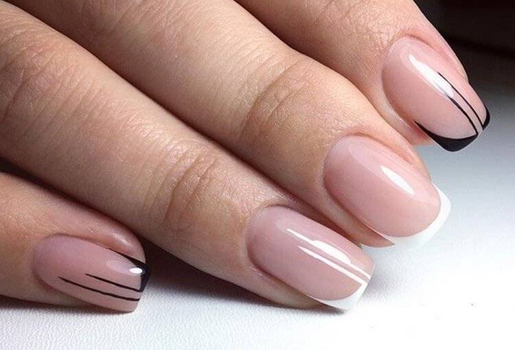 Беспроигрышный вариант простого маникюра для коротких ногтей – черно-белый френч