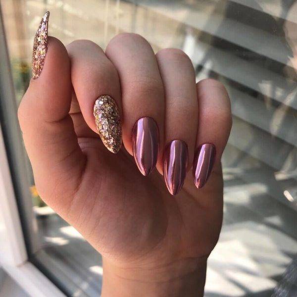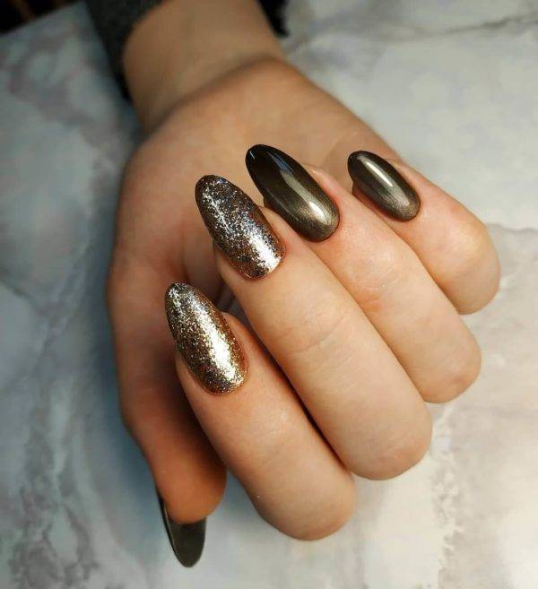 Свою популярность не теряет дизайн «перепелиные яйца», в котором главную роль играет топ с частицами округлой формы. Они рандомно ложатся на ноготь и создают неповторимый дизайн на любом цвете, отлично подойдут как для покрытия на всех пальцах, так и акцента нескольких.