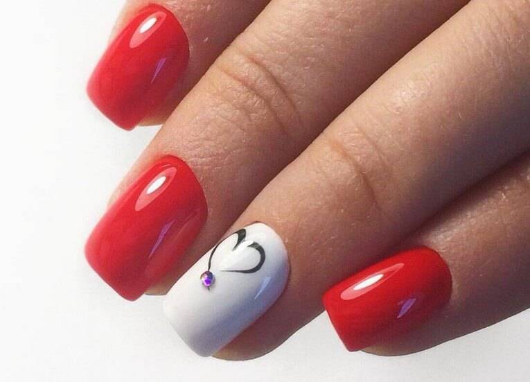 Второй вариант – дополнить мелкий рисунок стразами. На фото это один камешек, дополняющий сердечко. В основе композиции – контраст, объемные линии и блеск декора.