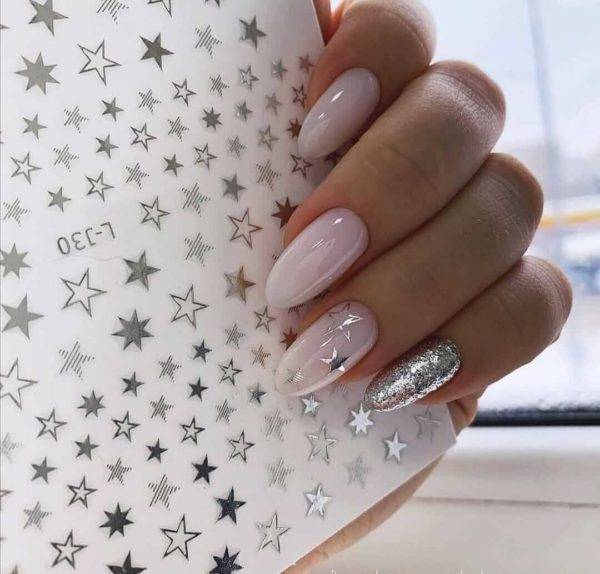 - Покрываете ноготь базовым оттенком (жемчужный цвет будет очень кстати).