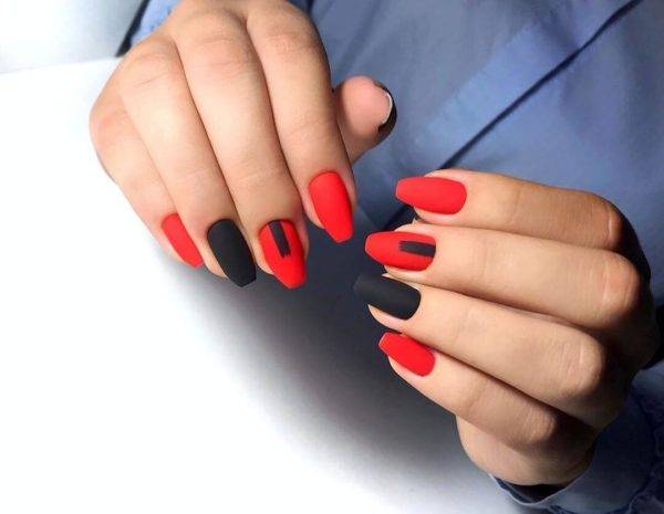 Использование изображений геометрических фигур будут не менее модными нежели в этом. Зигзаги, точки, треугольники, квадраты будут сочетаться на ногтях по одной из особенностей – величине, форме, цвету. Для ноготков разной длинны прекрасно подходят геометрические узоры. Также, многие стилисты рекомендуют объединять модные полоски геометрическими узорами, зонируя ногтевую пластину на части, где в каждой располагается своя фигура. Большим плюсом этого нейл-дизайна есть зрительная коррекция природной формы «родных» ногтей – которые визуально выглядят длиннее и уже.