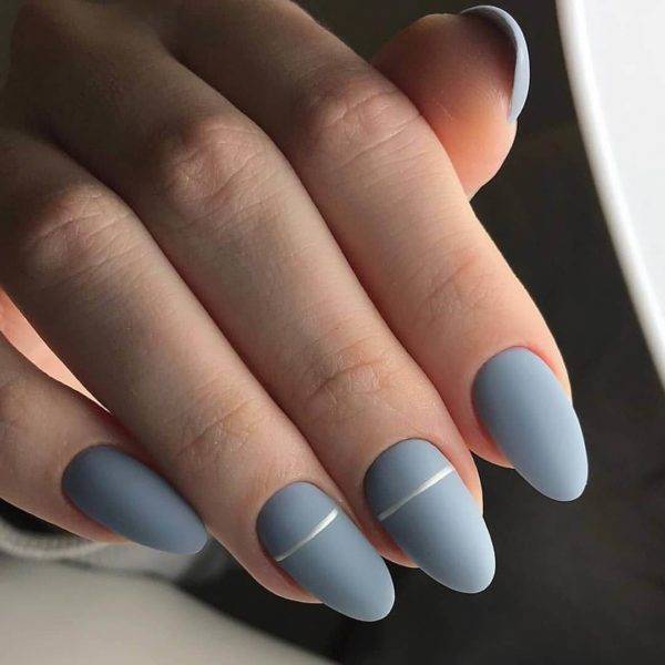 На фото дизайн дополнен оригинальными вертикальными линиями, чтобы визуально удлинить пластину и привлечь внимание к стилю. Если сложно прорисовать три ногтя в такой технике, оформи только один на выбор