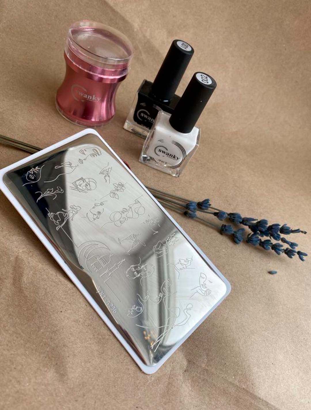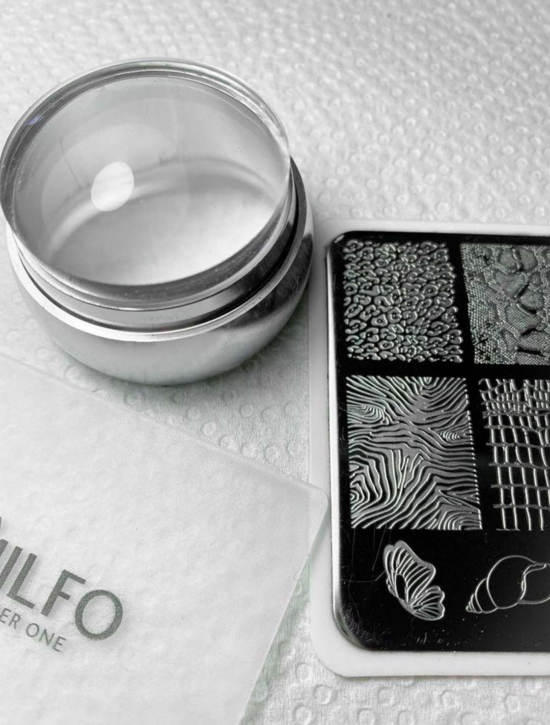 Для этого есть два типа материалов : гель-краска и лак для стемпинга. Гель-краска просыхает только под ультрафиолетовой лампой, в работе с ней не нужно торопиться, в отличие от лака, который сохнет на воздухе в течение 1 минуты. Лак для стемпинга имеет преимущество! С помощью него появляется возможность создать реверсивный стемпинг.